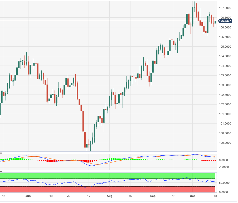 DXY摆脱了本周前半段的悲观情绪,周三重新测试 106.00 低位区域。 如果看涨势头加速,突破周内高点 106.78(10 月 12 日)可能促使该指数在短期内开始测试 2023 年的顶部 107