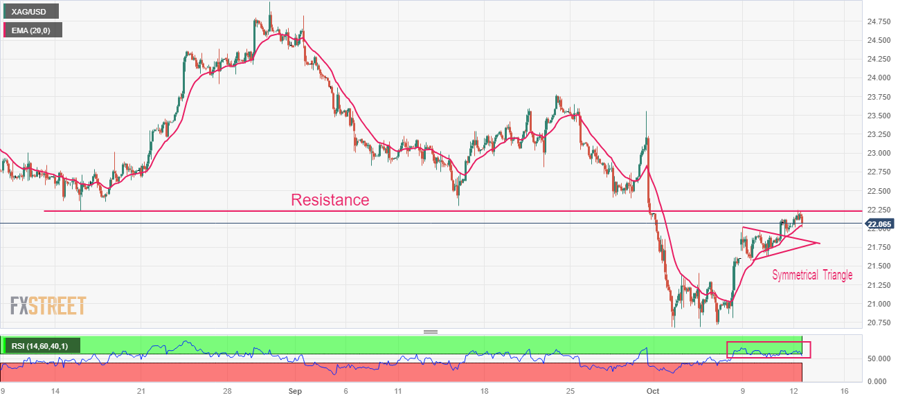 在美国 9 月份通胀报告基本符合预期之后,银价(XAG/USD)在 22 美元上方面临抛售压力。美国劳工统计局报告称,核心消费者价格指数(CPI)增长 0.3%,符合预期。年度核心 CPI 数据从之前