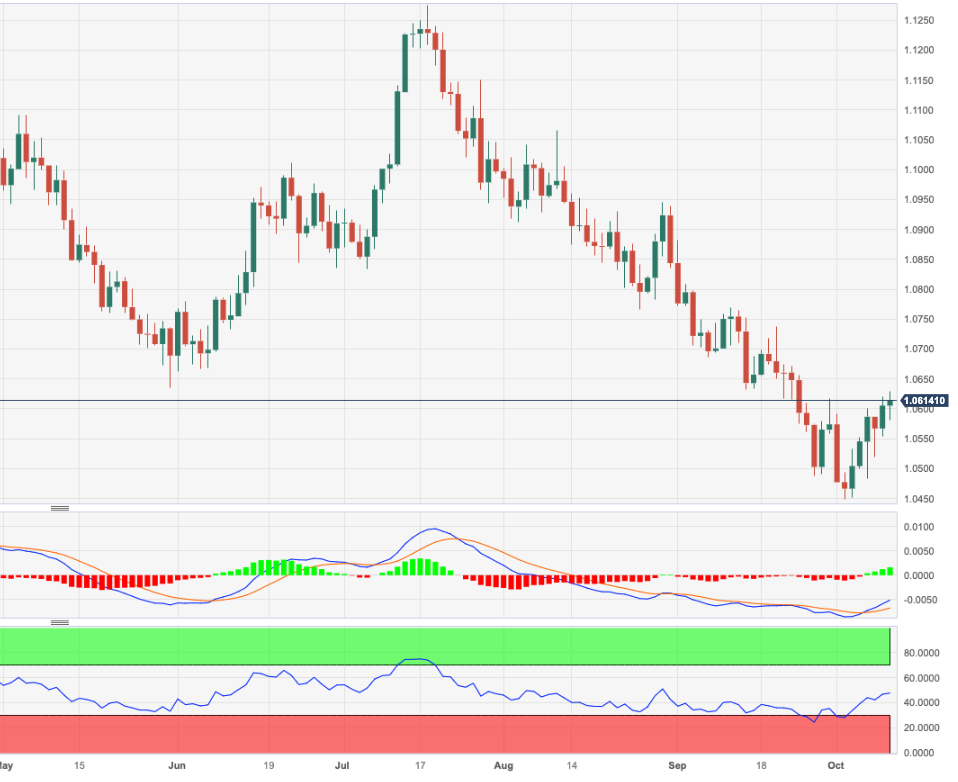 欧元现在对美元加速升值。 欧洲股市在周中普遍上涨。 欧元/美元在1.0630附近的近期顶部徘徊。 美元指数(DXY)接近月低点105.70左右。 德国9月CPI终值同比上升4.5%,环比上升0.3%。