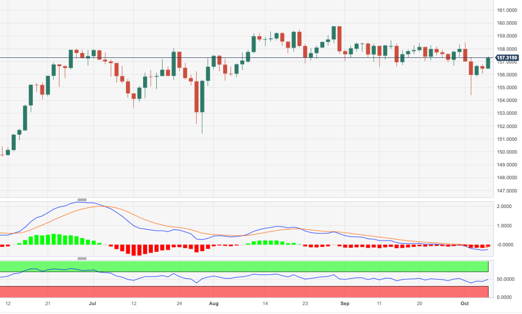欧元/日元 很快摆脱了周四不确定的价格走势,在本周末恢复上行趋势,突破 157.00 关口。 与此同时,该货币对仍处于盘整区间内,突破后将上探迄今为止的月度高点 158.65(9 月 13 日),然