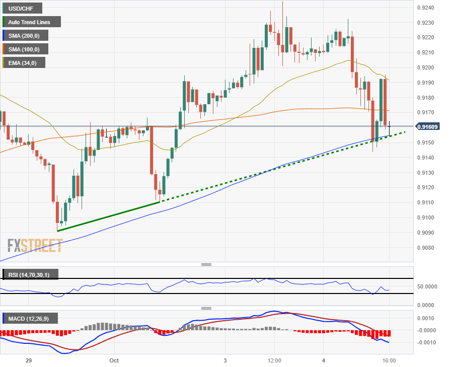 随着瑞郎反弹,美元/瑞郎跌回 0.9144 新低