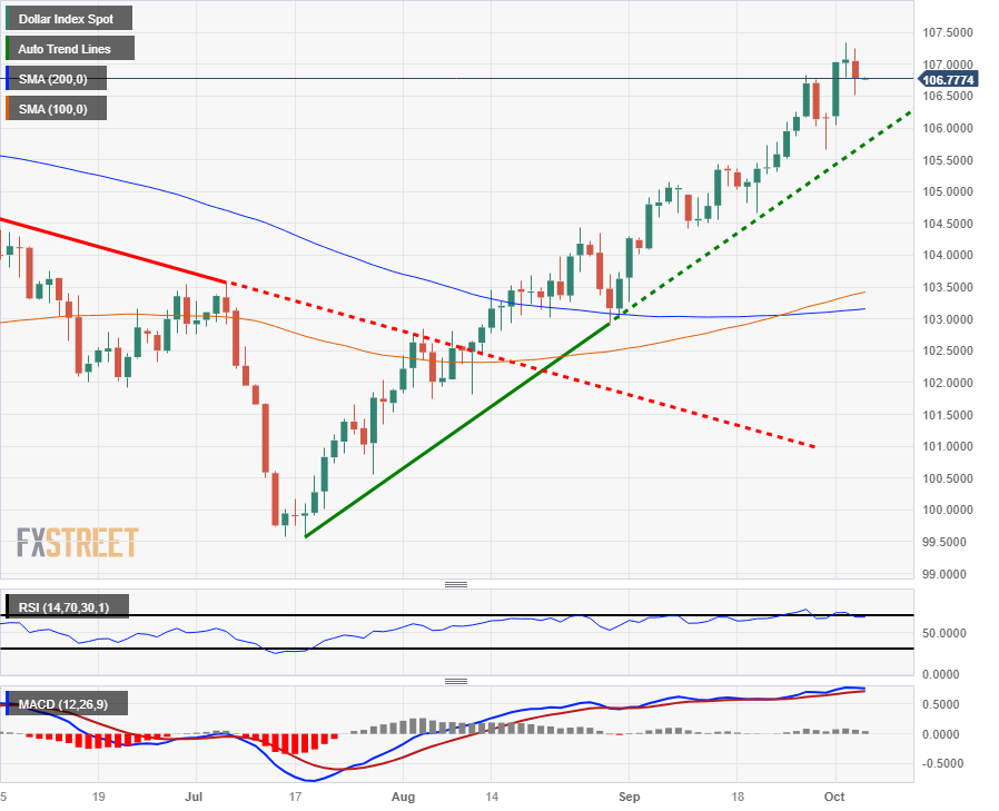 美元指数跌破 107.00 水平,但由于美债收益率维持在高水平,下行空间仍然有限