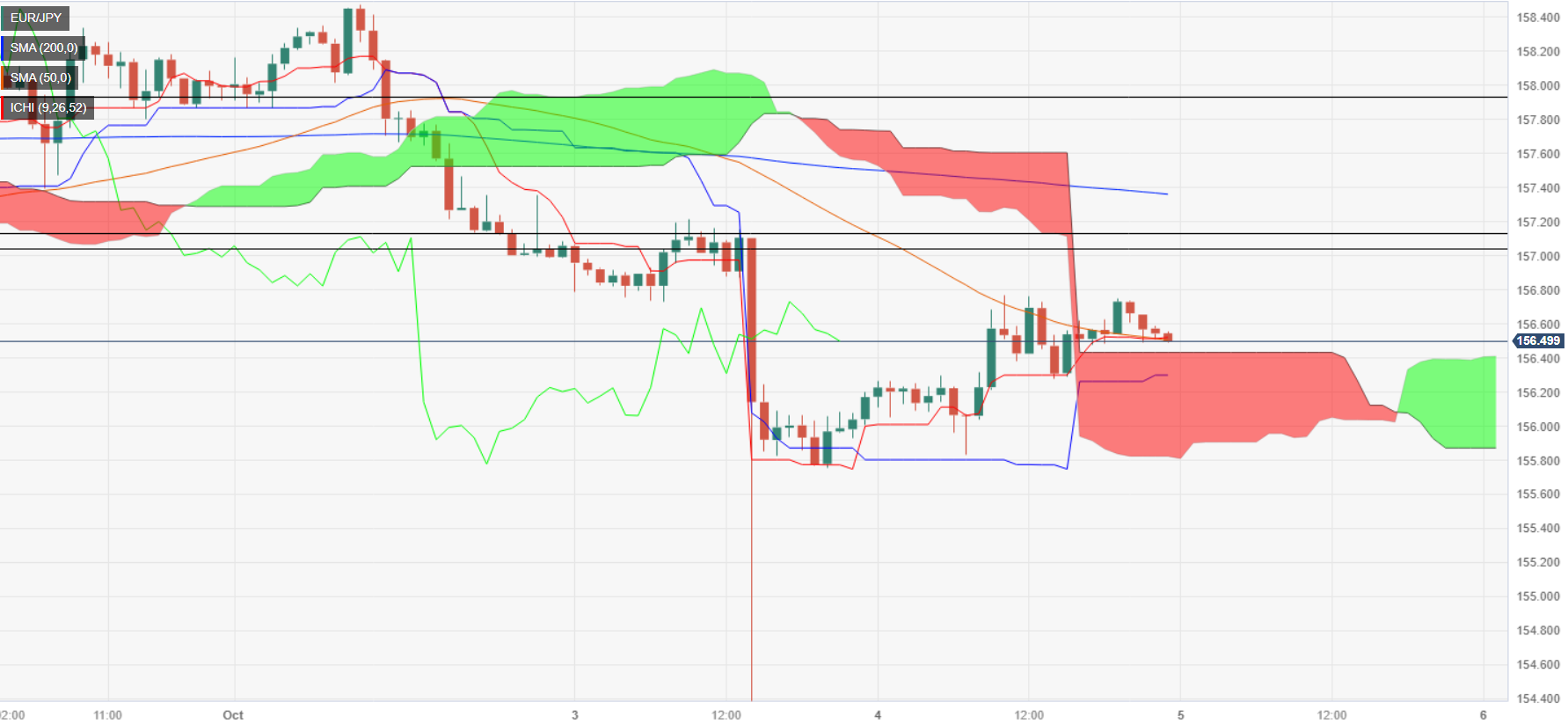 欧元/日元价格分析:震荡于一目均衡图云图,盘整于 156.50 附近