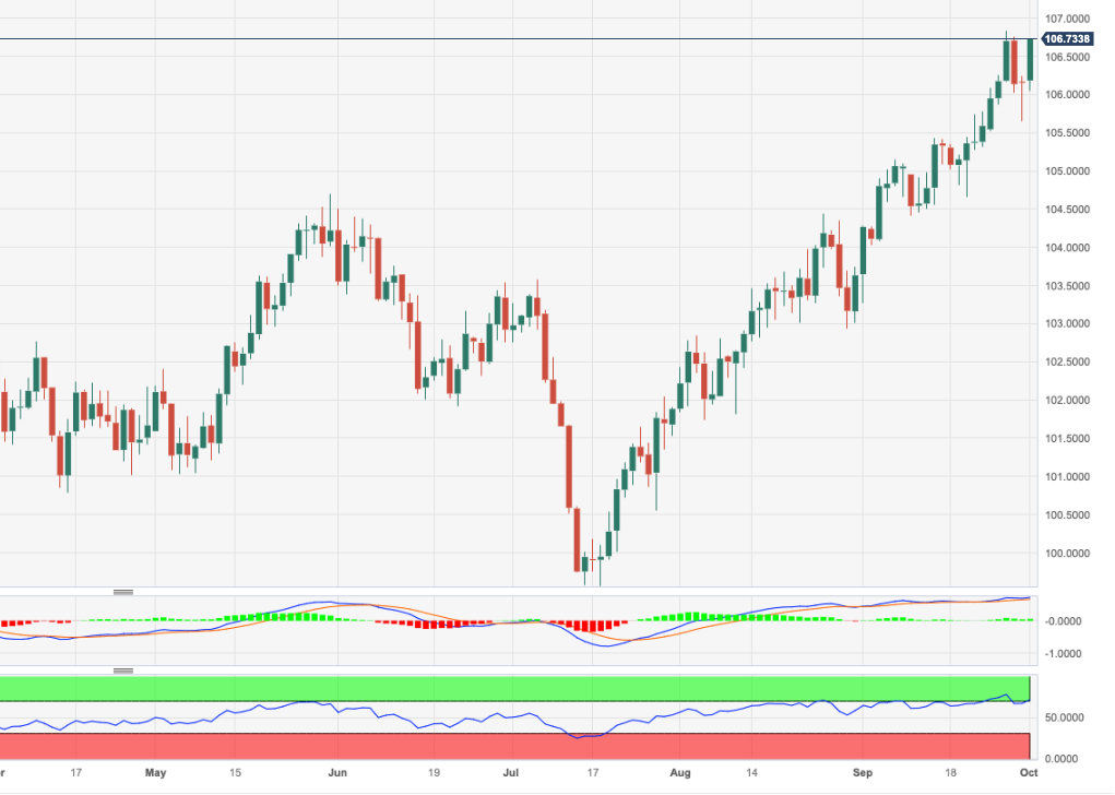 DXY 的上行势头加快了步伐,与本周初在 106.70 附近的 2023 年峰值区域相距不远。 与此同时,美元暂时可能会有更多涨幅。一旦该指数突破年内高点 106.83(9 月 27 日),则可能鼓