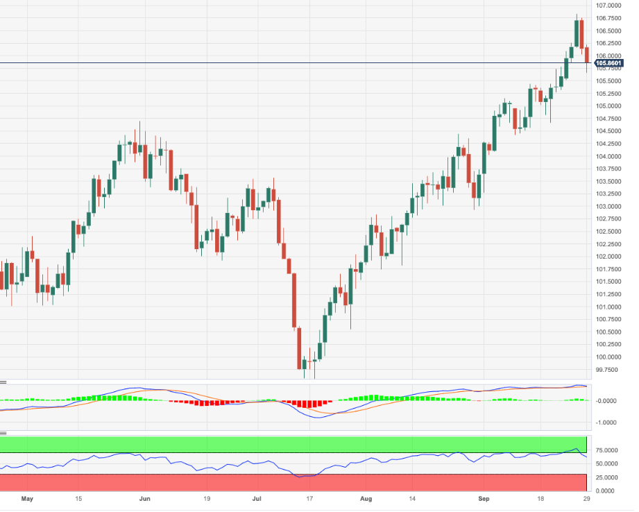 DXY扩大了周四的跌幅,并在本周末短暂测试 105.70 区域附近。 尽管技术面持续修正,但目前似乎仍有可能出现额外涨幅。突破年内高点 106.83(9 月 27 日)可能会促使该指数挑战周线顶部