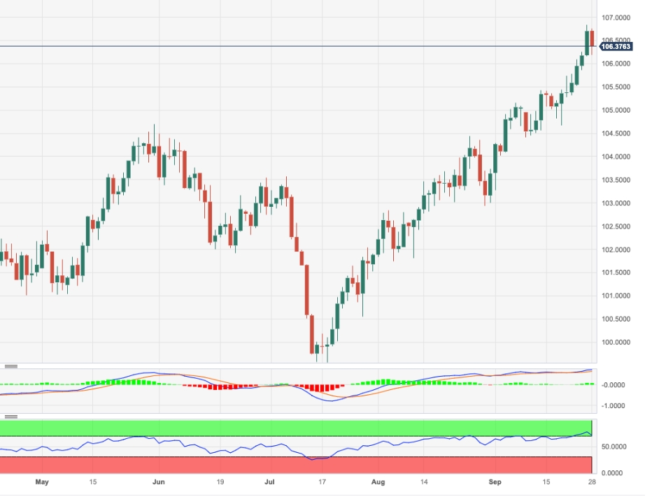 周四,DXY面临一定的下行压力,并放弃了 106.80/85 区间的 2023 年高点区域。 尽管技术面持续修正,但目前仍有可能出现进一步涨幅。突破年内高点可能促使该指数挑战周线顶部 107.19