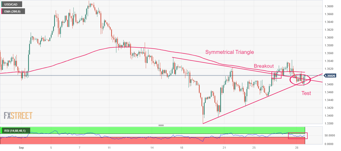 美元/加元价格分析:测试1.3500附近的三角形突破区域