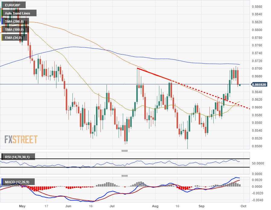 市场为欧盟通胀和英国国内生产总值做准备,欧元/英镑从 0.8700 回落