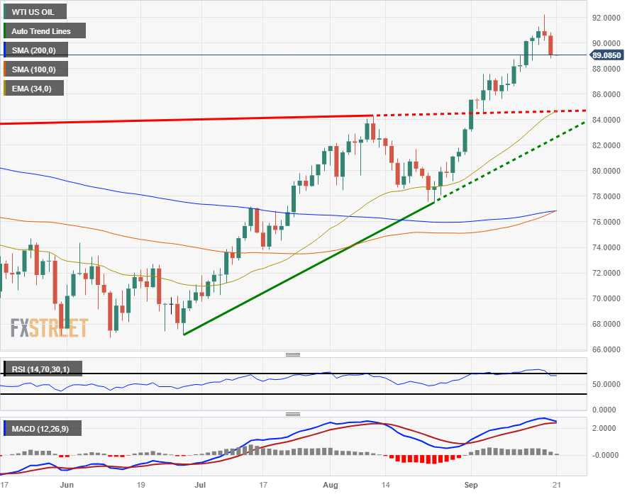 WTI油价跌破 90 美元,美联储释放鹰派后WTI油价稍作喘息