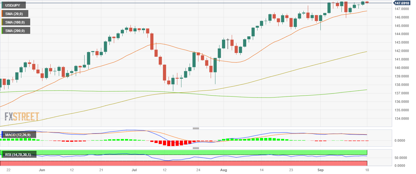 本周伊始,美元/日元出现了一些下跌,并跌至 147.70,主要原因是美元对其竞争对手的交易略显疲软。美联储会议和日本央行会议将分别于本周三和周五举行,但预计两家央行都不会加息。鲍威尔和Ueda的立场将