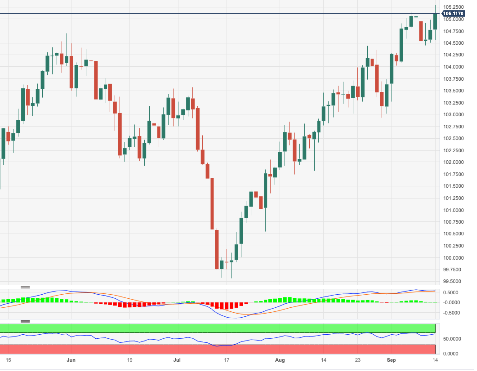 DXY扩大了周三的涨幅,周四在 105.00 上方触及六个月新高。 多周涨势的延续看来良好稳健,突破月度高点 105.28(9 月 14 日)将促使该指数重新测试 2023 年高点 105.88(3