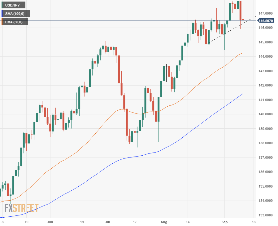 美元/日元周一开盘处在 147.85 附近高位,收盘于 146.50 附近,录得 7 月以来最弱收盘表现。日元(JPY)在日本央行(BoJ)看涨言论的支撑下迎来新一轮买价,而美元(USD)则因近期牛市