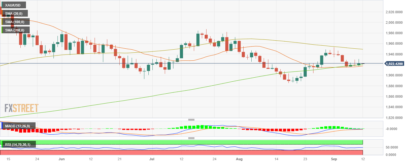 金价周一收于1922美元,日涨幅为0.18%。由于美元疲弱,金价获得一些动能,但美国国债收益率居高不下,阻止金价试图大幅上涨。 技术面显示,金价日线图显示中性,但略有看涨倾向,有利于黄金多头。相对