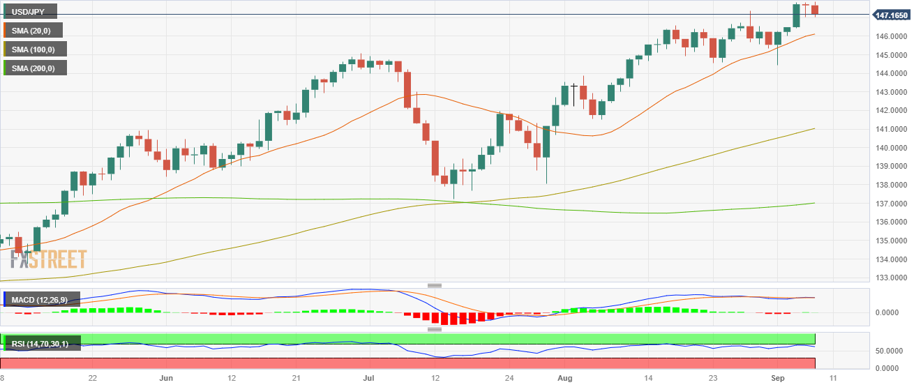 周四时段,受日本央行(BOJ)采取干预行动阻止日元下跌的预期增加的推动,美元/日元小幅跌向 147.20 区域。另一方面,美元正在盘整,但对美联储(Fed)的鹰派押注限制了美元的下行空间。 美国劳工