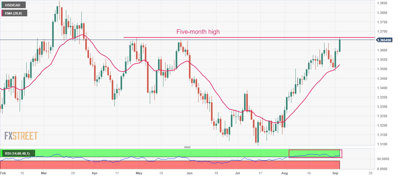 美元/加元价格分析:在加拿大央行政策出台前刷新五个月高点至1.3670附近