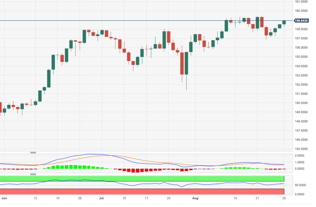 欧元/日元在本周二再次延续回升势头,并成功短暂击穿 159.00 上限。 如果上行步伐加快,该交叉盘将挑战近期 2023 年高点 159.50(8 月 22 日)附近,然后是关键整数关口 160.0
