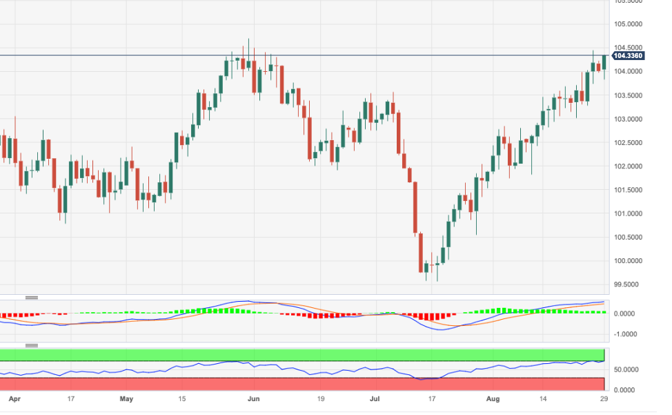 周二,DXY迅速摆脱周一的跌势,重拾升势,重新测试 104.30/40 区域。 短线上行目标是 8 月顶部 104.44(8 月 25 日),而突破该水平将打开快速测试 5 月高点 104.69(5
