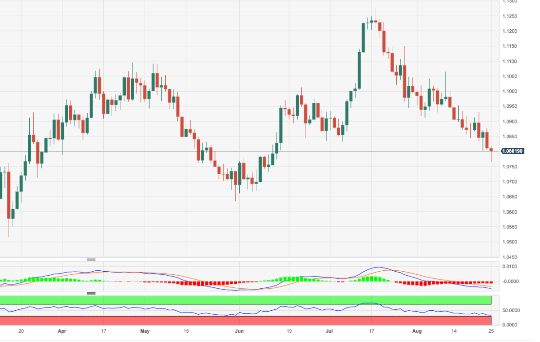 欧元/美元 周五早些时候最低触及 1.0770/65 区域(或新的月度低点),目前在 1.0800 附近摇摆不定,仍然承压。 跌破 8 月低点将进一步下探 5 月低点 1.0635(5 月 31 日