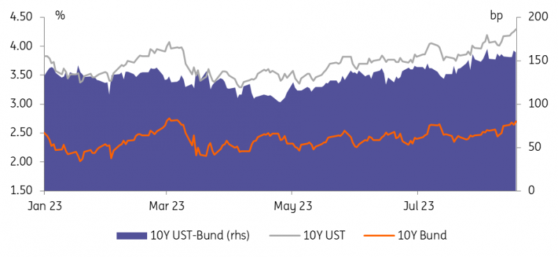 如果美联储已经见顶,那么长期市场利率通常会下降——但事实并非如此,我们继续指出降息折扣的减少是基本原理。中期供应压力也在向同一方向推动。其他低收益的核心利率也是如此,因为它们被美国制造的债券熊市拉得更