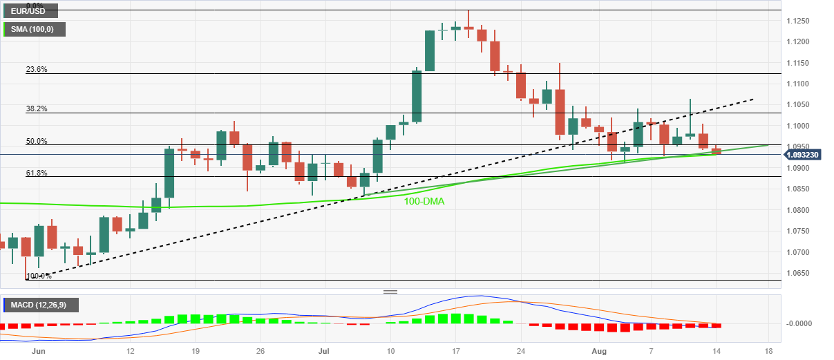 周一欧洲时段早盘,欧元/美元连跌两日,跌至一周新低 1.0930 附近。 在这期间,欧元/美元延续上周从 5 月下旬以来的支撑阻力线反转的走势,寻求跌穿短期关键支撑线和 100日均线。MACD 信号