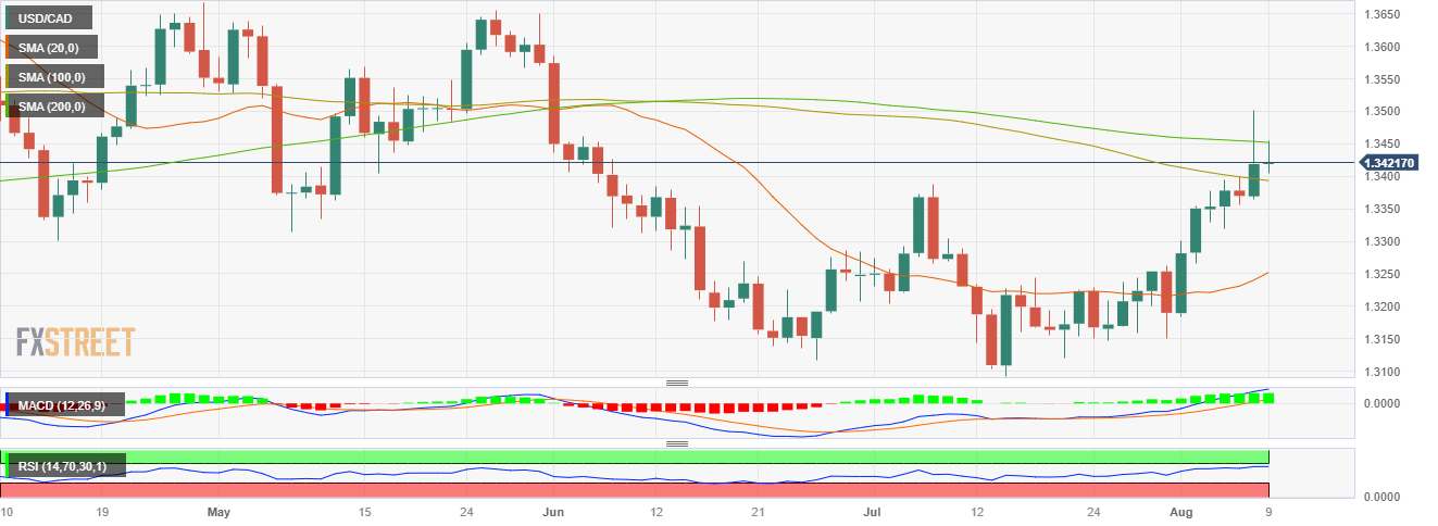 周三美元/加元持平于 1.3420 附近。美国方面无数据公布,而投资者在周四的 7 月份消费者物价指数(CPI)数据公布前保持谨慎。不过,加拿大 7 月营建许可数据强劲,油价升至 2022 年 11
