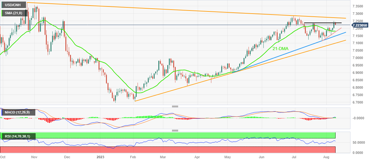 美元/离岸人民币价格分析:中国通胀公布后,美元/离岸人民币自月线阻力7.2370-80加大回调