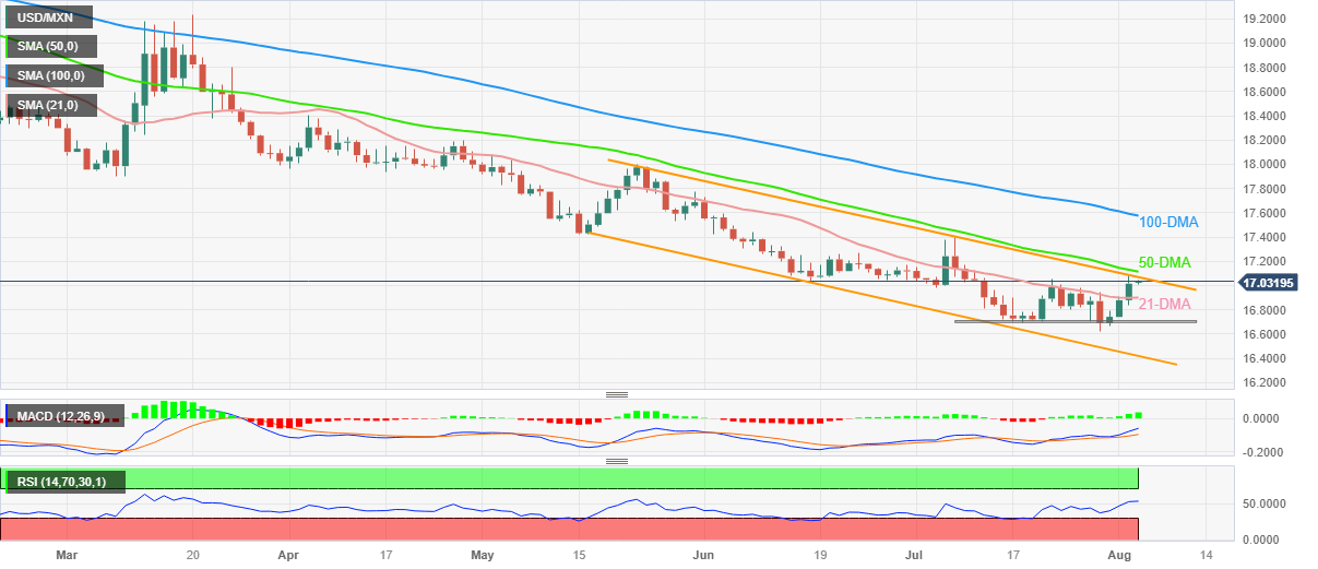 美元/墨西哥比索价格分析:多头接近占据主导看向17.10,关注美国数据