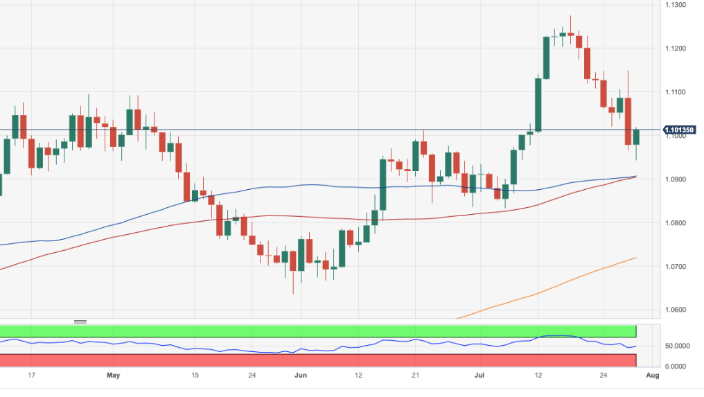 欧元/美元 从 1.0945/40 附近的三周低点反弹,并在本周末收复了 1.1000 附近的区域。 考虑到近期的价格走势,不应忽视额外的疲软。一旦1.0943(7月28日)的周度低点被清除,进一步