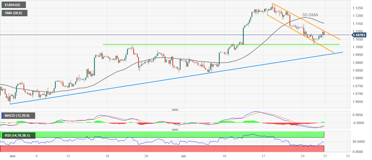 欧元/美元价格分析:欧洲央行决议来袭,欧元处在看跌通道内,自 1.1100 附近回撤