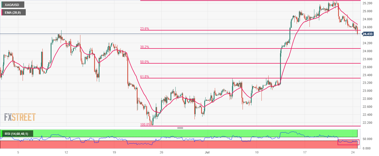 白银价格分析:美联储政策出台前,白银/美元刷新日内低点至24.50美元附近