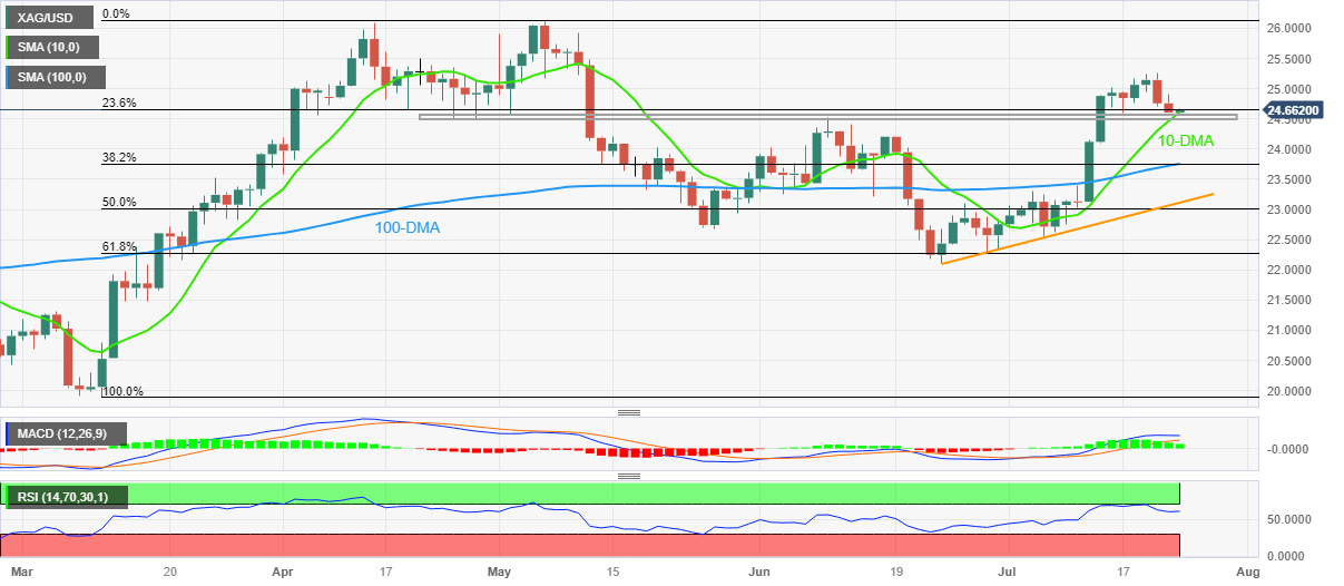 白银价格分析:美联储决议前,银价自10日均线反弹,寻求重回25.00美元