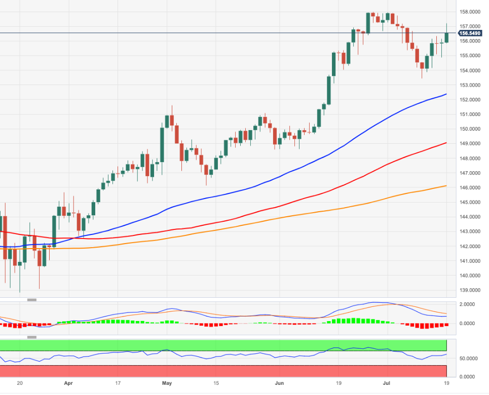 欧元/日元摆脱近期震荡的价格走势,周三明显反弹至 157.00 关口上方区域。 与此同时,欧元/日元保持回升模式,升势的持续有可能挑战迄今为止的 2023 年峰值 158.00(6 月 29 日)。