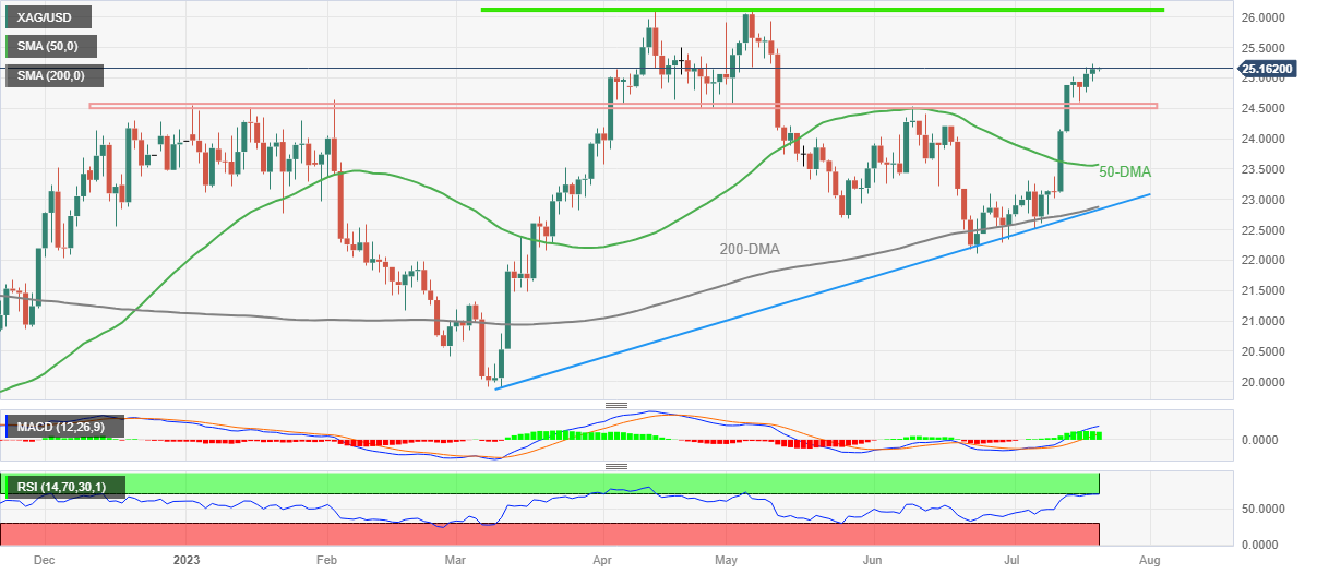白银价格分析:相对强度指标超买,考验上涨接近26.10-15美元关口阻力