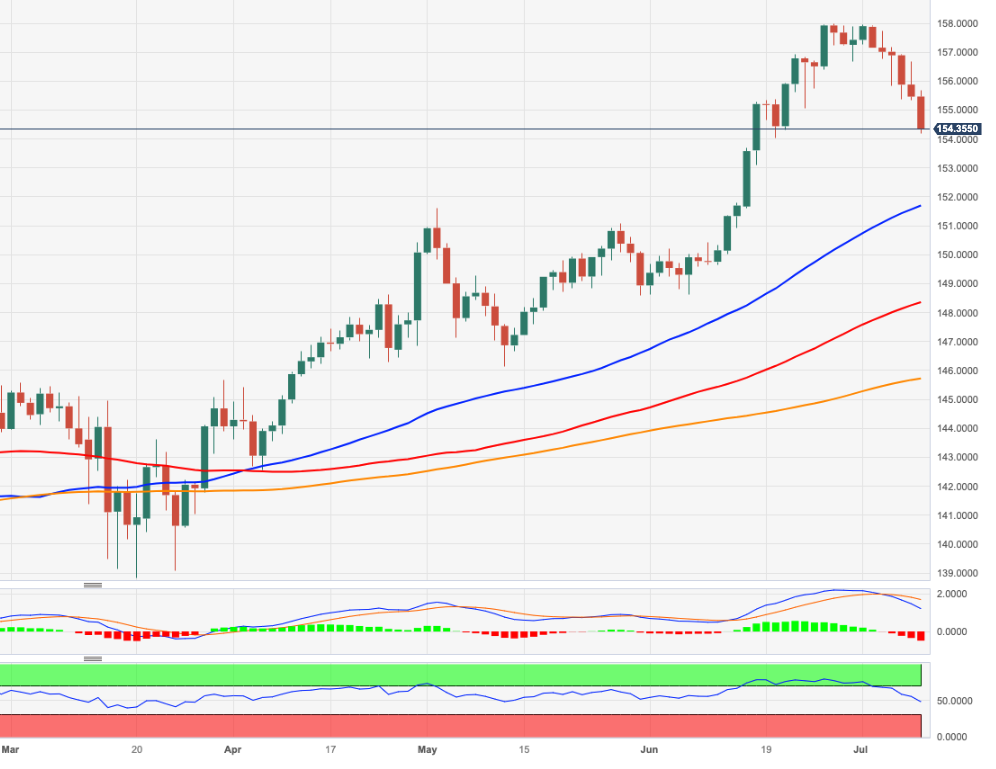 欧元/日元 加速下跌,周二在154.00附近或近四周低点附近震荡。 该交叉盘进一步扩大了其月度回调幅度,并有可能重新测试154.04(6月20日)的周低点。跌破该水平可能打开深度回撤的大门,初步跌向