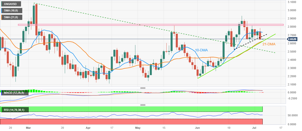 周四亚市早盘,天然气价格一度回升至2.65美元,但仍受压于一周低点。 天然气价格价格跌穿两周上升支撑线刷新周线低位2.68美元附近,现在构成相邻阻力。在这期间,天然气价格不仅从10日均线反转,而且还