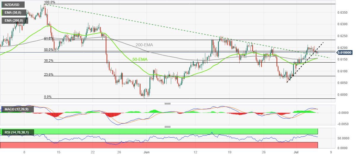 纽元/美元价格分析:前期阻力及指数移动均线汇合处构成阻力,遇阻0.6200水平