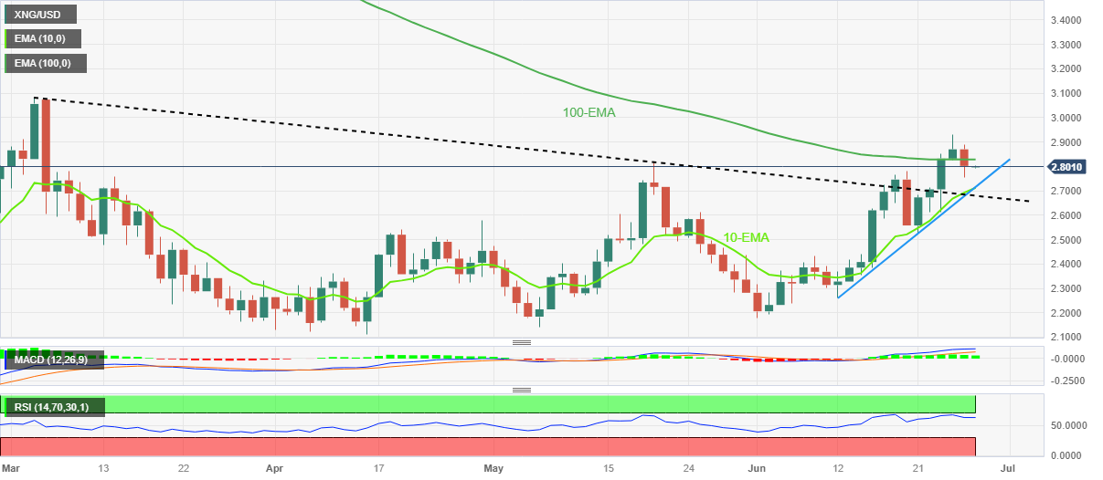 天然气价格分析:掉头回落到100指数移动均线下方,但处在2.67美元上方仍保持看涨
