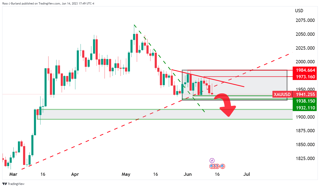 黄金价格预测:美联储鹰派基调“跳过加息”,黄金/美元跌向1940美元