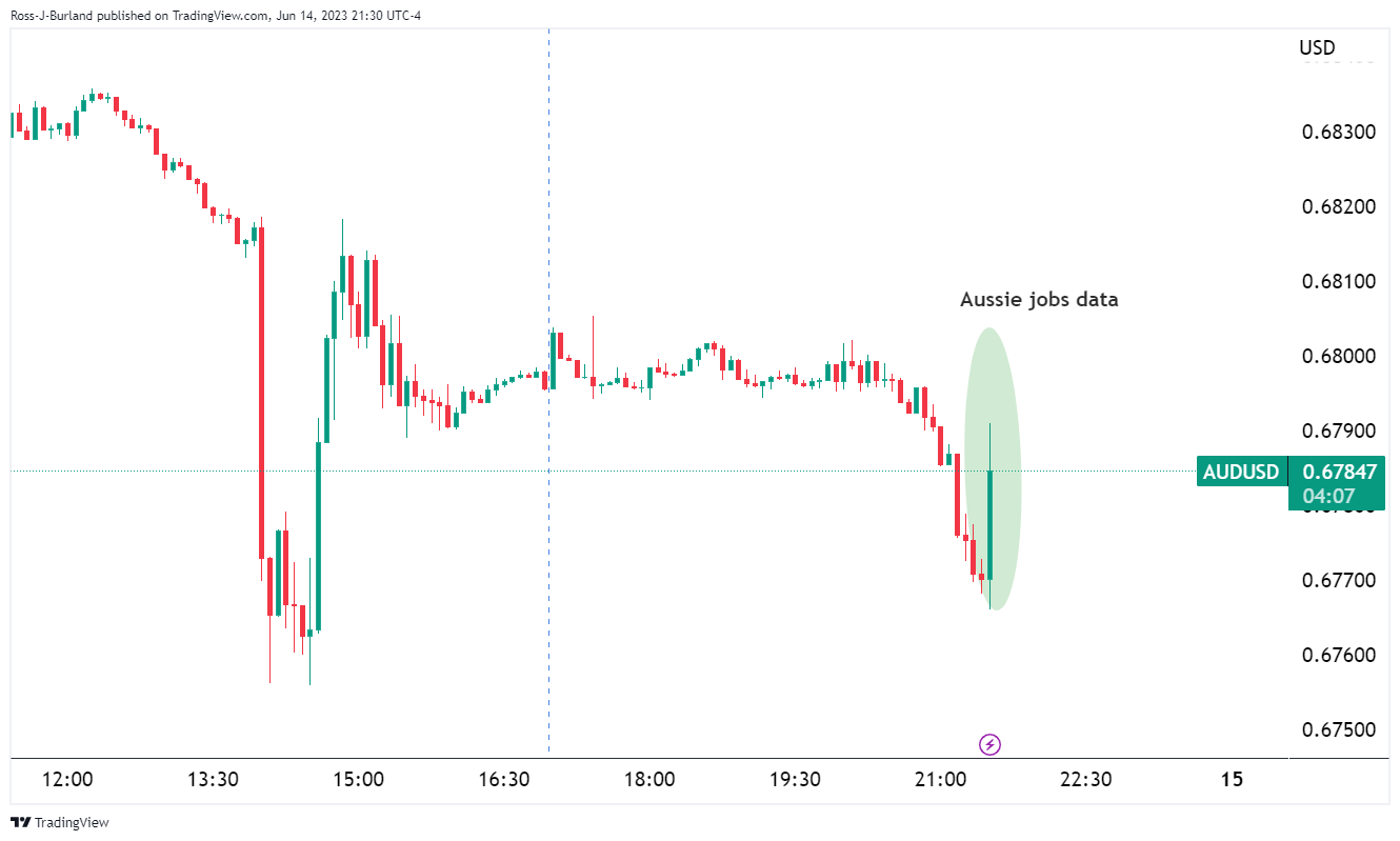 突发:澳洲就业人数变化7.59万(预测为1.75万,前值为-0.43万),澳元/美元回升