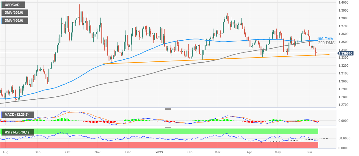 周五亚市早盘,美元/加元整理于一年来的最低水平1.3360附近,暂停三日跌势。 这样一来,加拿大关键就业数据出炉前,美元/加元从2022年11月以来的上行支撑线上反弹。应该指出的是,本周初加拿大央行