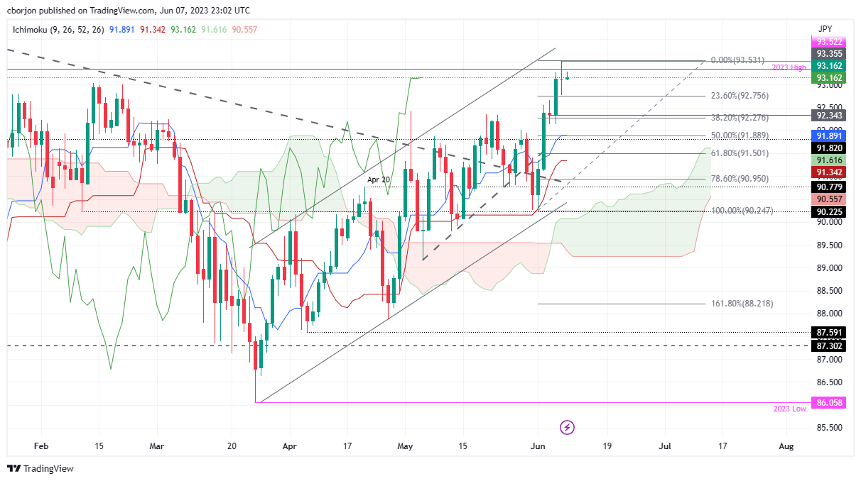 亚市开盘,澳元/日元徘徊在93.20附近,此前周三澳元/日元触及年初至今(YTD)新高后构筑十字星。然而,澳元/日元日线收盘于6月6日高位93.26下方,表明周四开盘后多头失去主导。 澳元/日元价格