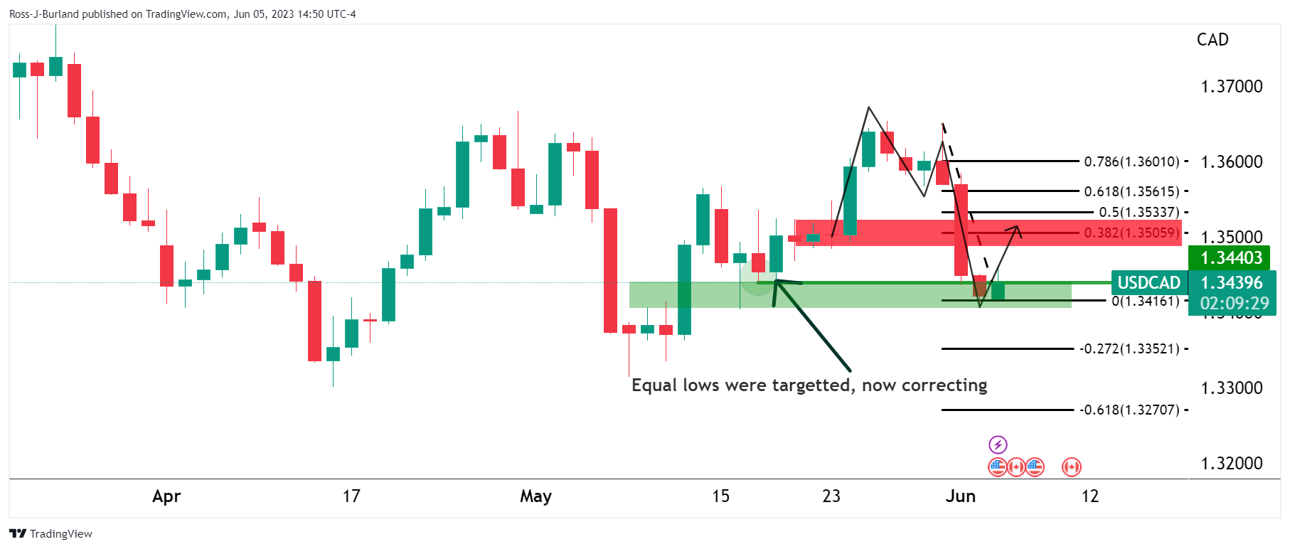 周一开盘美元/加元一直以多头为主导,而基准债券收益率攀升,尽管美国经济数据方面出现意外。尽管如此,就以下分析而言,美元/加元技术前景仍然看涨: 美元/加元日线图 美元/加元跌破均衡低点,随后,