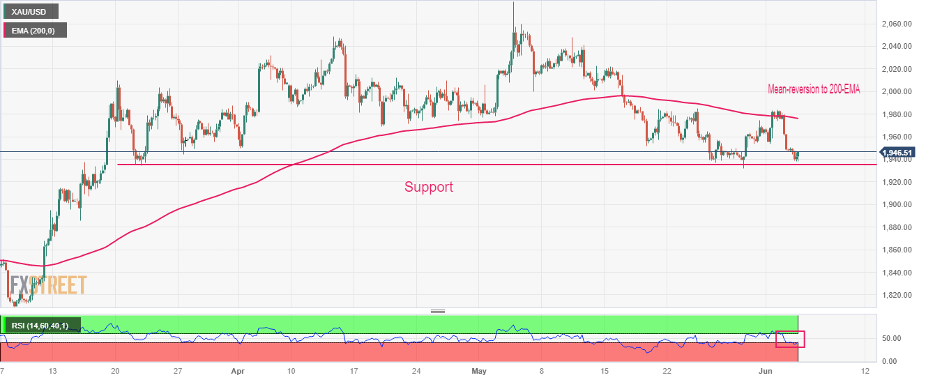 金价(XAU/USD)在纽约时段创下1,940.00美元左右的四天新低后,捍卫了其下行空间。由于美国ISM机构将公布5月份服务业PMI数据,贵金属预计将获得新的推动力。 在上周公布了低迷的制造业PM