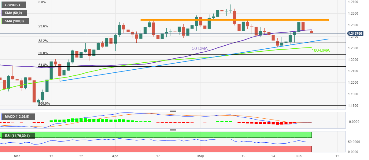 英镑/美元价格分析:跌破50日均线提振空头,接近1.2400水平
