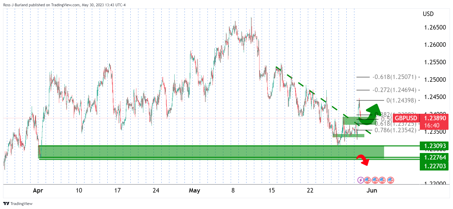 周二,由于英国通货膨胀仍然是人们关注的焦点,英镑兑弱势美元上涨。这迫使英镑/美元走高,并使多头重新获得主导权,以下分析将说明这一点 英镑/美元小时图 英镑/美元已经突破接近前期看跌趋