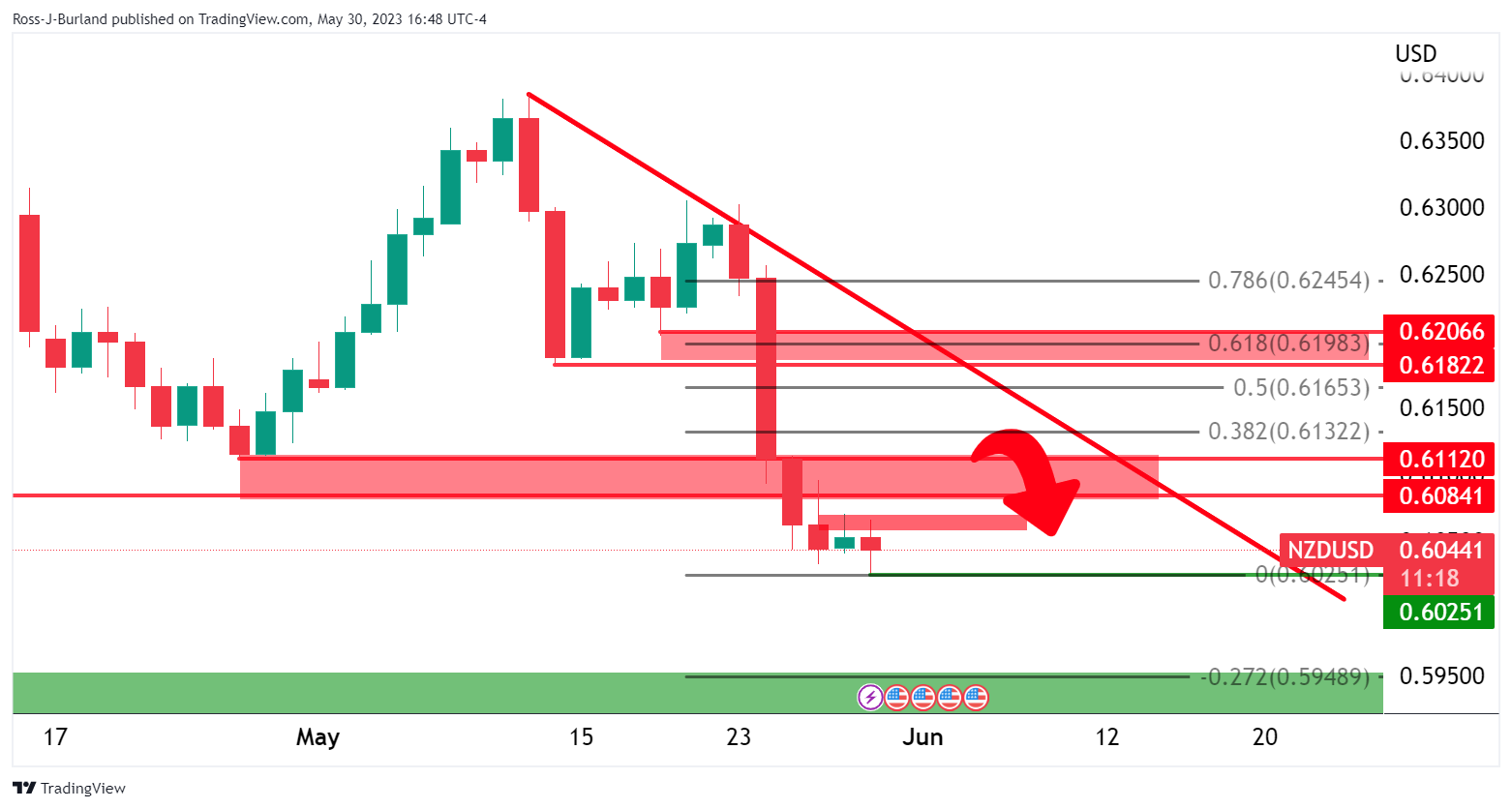 亚市开盘前,纽元/美元震荡于窄幅区间0.6025和0.6066区间,小幅走低并处在震荡当中。纽元/美元波动加大,美元当日大部分时间里承压。 人们担心国会是否会通过拜登/麦卡锡的美国债务上限协议。负责