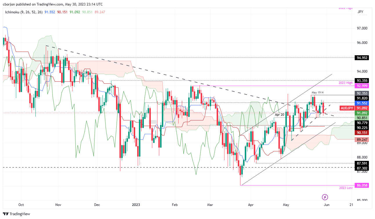 澳元/日元自周线高位92.01回调,连续两天下跌,原因是美国债务上限问题引发市场情绪恶化,交易员们正在为澳大利亚消费者物价指数做准备。亚市开盘澳元/日元交易于91.06,下跌0.04%。 澳元/日元