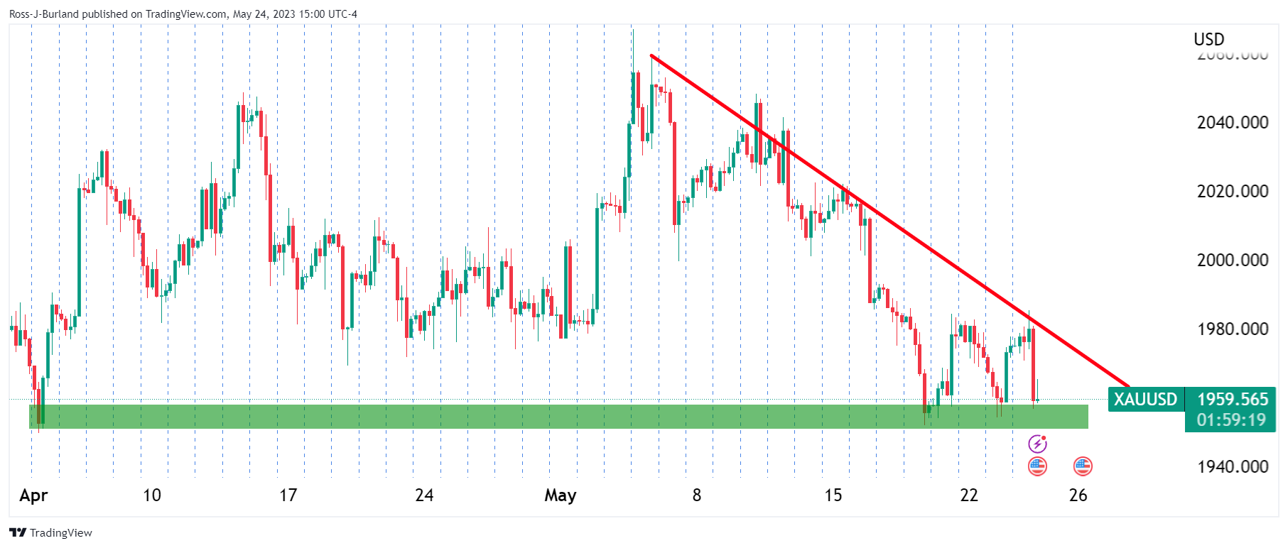 黄金价格预测:金价空头介入,看向1950美元附近的关键支撑位