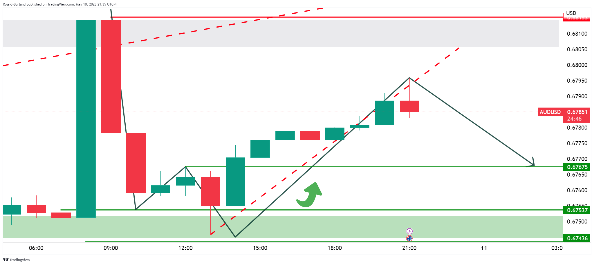 澳洲消费者通胀预期上升,中国通胀及生产者价格指数疲弱,澳元/美元再次自0.6800回撤