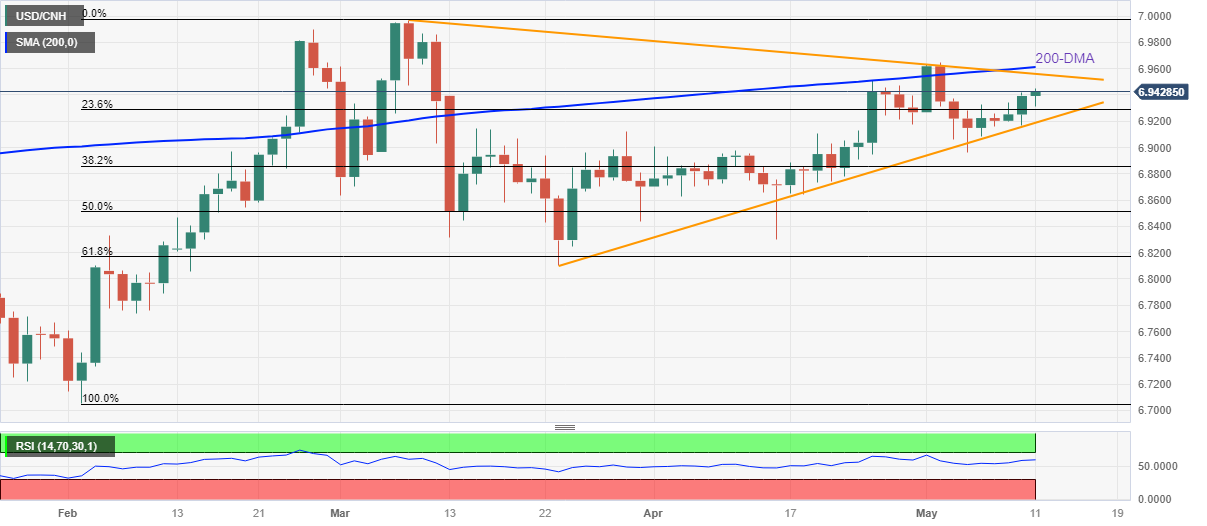 美元/离岸人民币连续三日上涨,美国和中国通胀数据低迷的情况下,美元/离岸人民币刷新一周高位6.9450附近。也就是说,周四早盘,美元/离岸人民币等待更多的线索,以抵御美元鹰派倾向。 也就是说,中国整